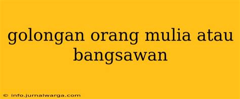 Orang mulia atau bangsawan adalah kelompok masyarakat yang memiliki garis keturunan yang terhubung dengan keluarga kerajaan atau bangsawan pada masa lalu. Mereka memiliki gelar kebangsawanan yang diwariskan dari generasi ke generasi. Gelar-gelar ini memberikan mereka hak istimewa dan pengakuan tertentu dalam masyarakat.